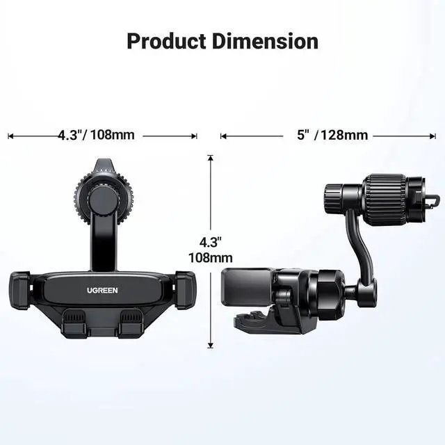 Simple Use: One-hand installation, just slide in your phone, UGREEN car phone holder mount clamps the cellphone automatically by gravity and provides the easiest operation and strong stable hold. No more need to press any side button. Important Note: this cell phone car mount only supports vertical angle, not for horizontal viewing