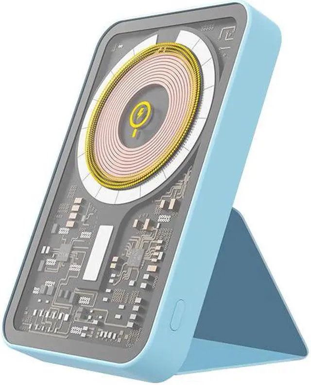 CORN 5000mAh 15W Mini Wireless Fast Charger portable transparent magnetic wireless charging Power Bank folding bracket PD20W Fast Charge For IPhone iwatch HUAWEI Blue