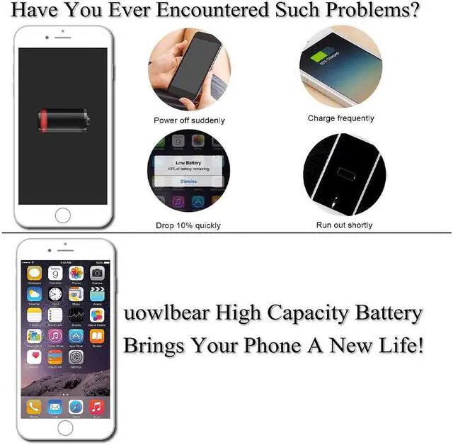 Uowlbear cell phone battery tested strictly by professional machine for 3 times before shipping. You can buy the Uowlbear replacement battery with confidence. You will get a high quality battery from us. Uowlbear battery will brings your phone a new life!