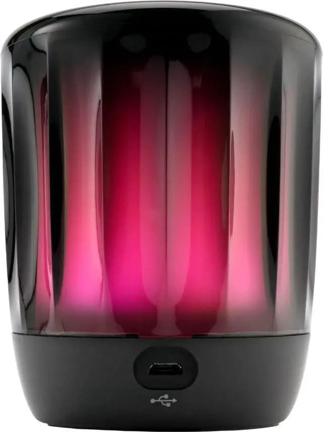 Presenting the PlayGlow Mini (iBT810) rechargeable color-changing Bluetooth speaker. Stream your music wirelessly and enjoy up to 10 hours of audio. The iBT810 features 4 color-changing modes including slow fade, fast change, favorite color, and pulse to music.