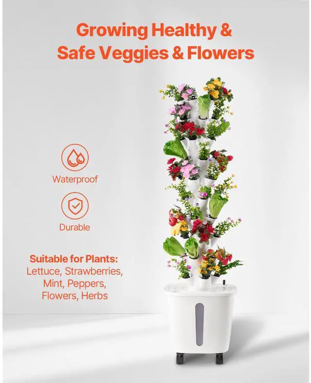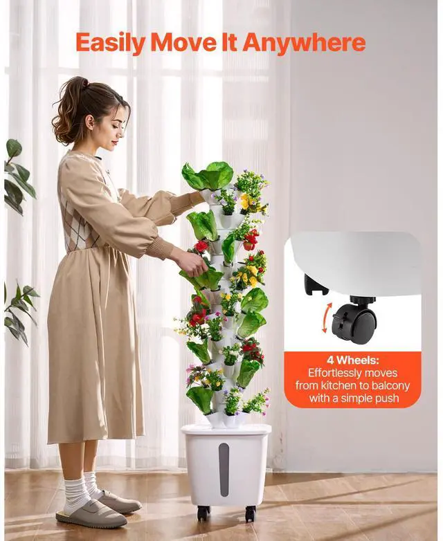 Hydroponic Growing System, 50 Pods Vertical 10 Tiers Hydroponic Tower, Rolling Hydronic Garden with Water Pump & Wheels, Indoor Plants Germination Kit for Herbs Fruits & Vegetables