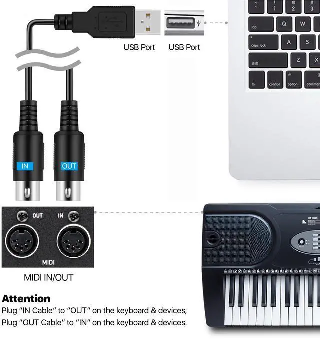 - Turn Any Space into A Professional Music Studio - The MIDI to USB Cable allow you to connect compatible piano keyboard synth and transfer MIDI signals to Mac, PC, Tablets or Smartphones for you to record and edit your audio music pieces and establish a personal music studio space
