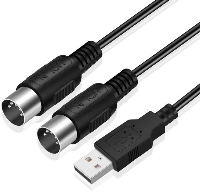 - 1x Midi to USB Cable Interface Converter - IN OUT Midi Cable Host Adapter Plug Controller Wire Cord For Keyboard Synthesizer Device to Mac Pc Computer Laptop iPad iPhone Music Studio (Black 6 FT)