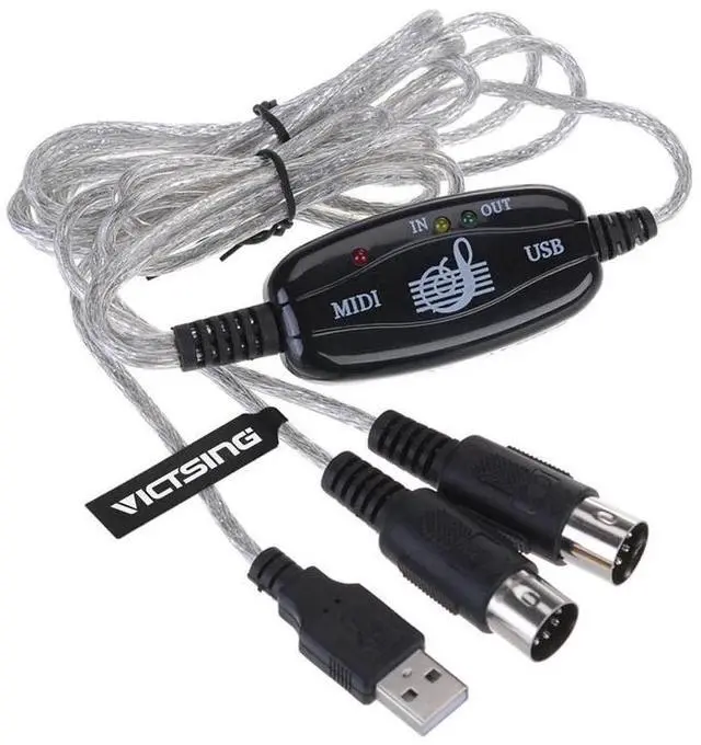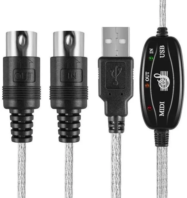 Connect the cable marked "OUT" to the MIDI "IN" socket of a MIDI keyboard (or MIDI device).