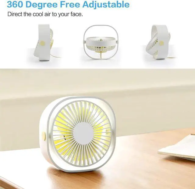 ONLY 6 oz! Compact lightweight design for maximum convenience. Small and lightweight personal fan provides cooling air circulation in any desired directions with 360 degree tilt rotation. Perfect for use in home, car, office, desktop, camping, or travel.