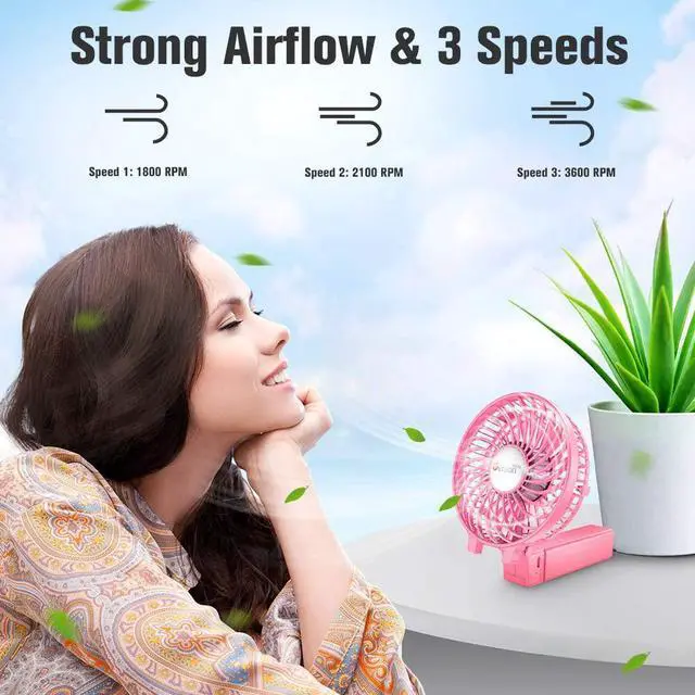 The portable fan adopts high-effective motor, which is available to nearly 3, 600 revolutions per minute for exceptional cooling performance. You can enjoy the powerful cooling wind in hot summer.