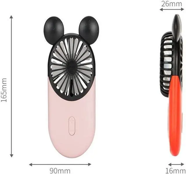 ADORABLE MICKEY DESIGN - Cute Mickey mouse design in red, blue, pink and yellow, pleasant blue LED light, an eye-catching mini fan that you can hold in hand perfectly. It is your ideal choice for both indoor and outdoor activities. Enjoy your cool summer!