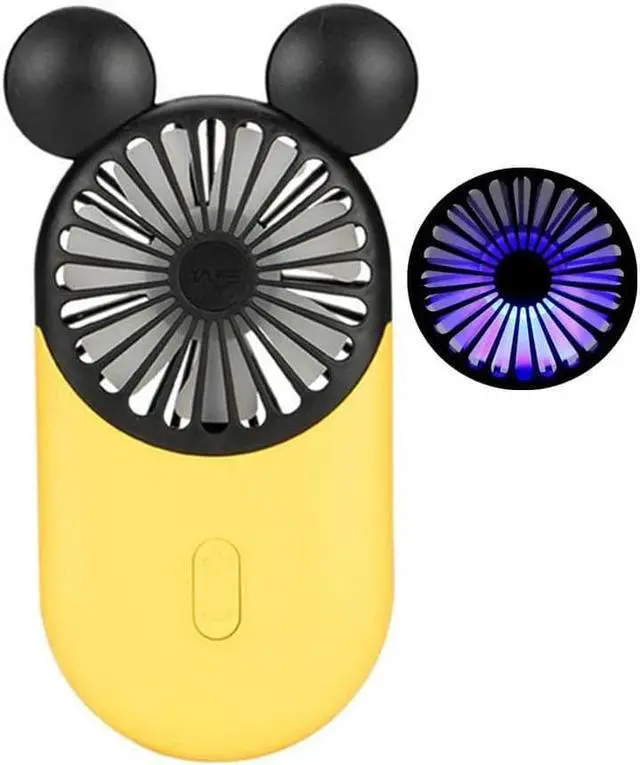 ADORABLE MICKEY DESIGN - Cute Mickey mouse design in red, blue, pink and yellow, pleasant blue LED light, an eye-catching mini fan that you can hold in hand perfectly. It is your ideal choice for both indoor and outdoor activities. Enjoy your cool summer!