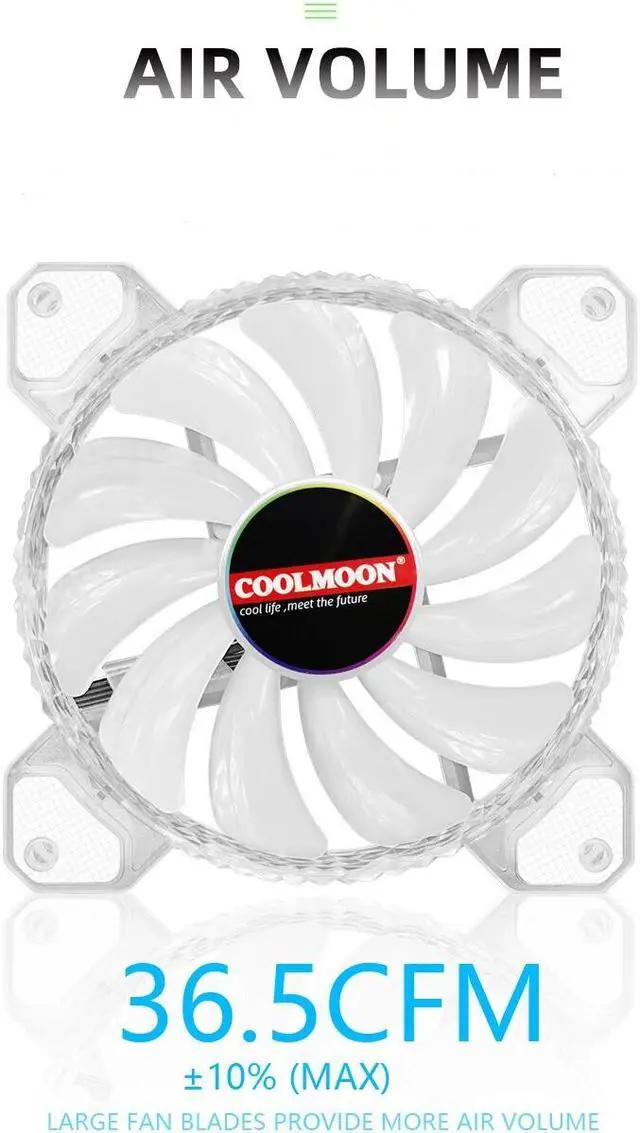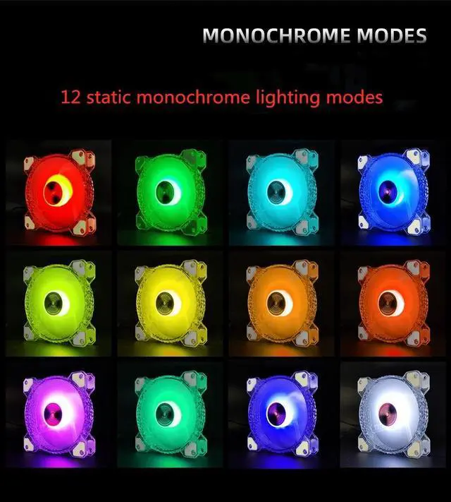 120mm RGB case fan High Brightness Dual Aperture,RGB:super multiple lightingmodes,12 kinds of monochromatic,Adjustable,Streamer Marquee,Speed adjustment.