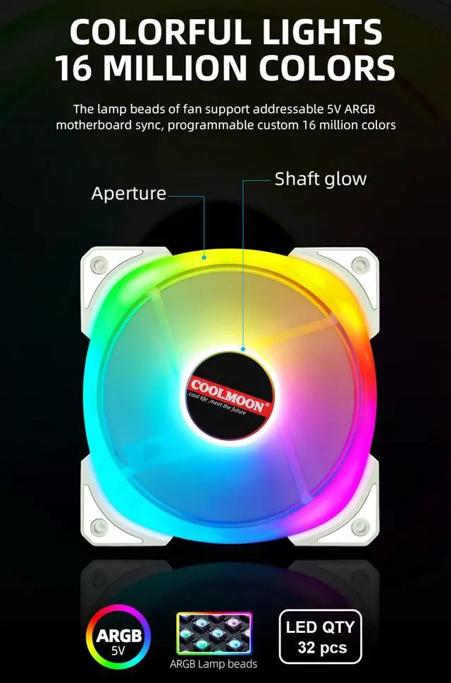 Colorful Lights 16 Million Clolors:The Lamp beads of fan support addressable 5V ARGB motherboard sync,programmable custom 16 million colors.