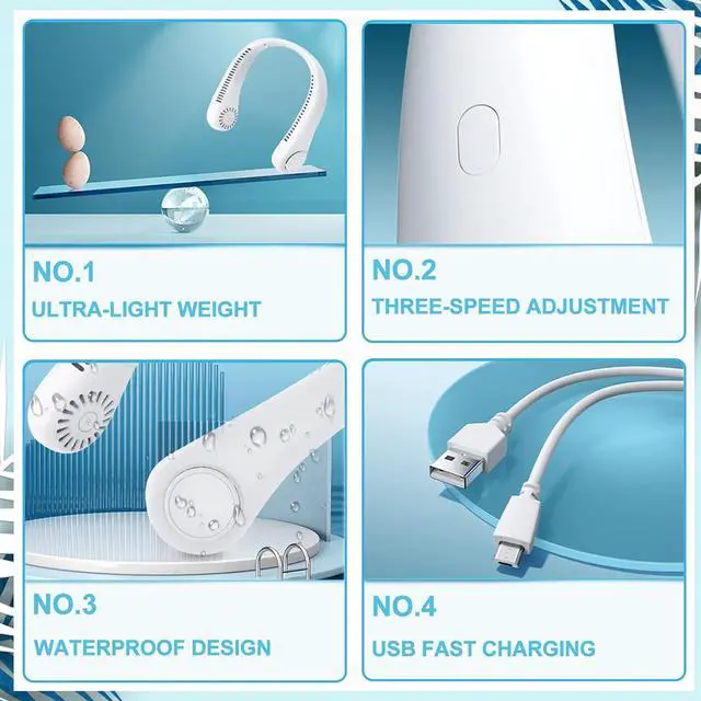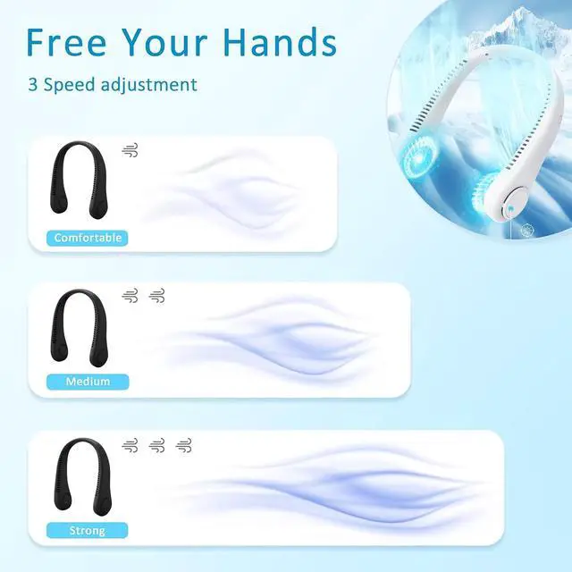 With three fan speeds to choose from, you can control your comfort level with a single button. Built with a USB rechargeable battery, this fan works with laptops, power banks, and any USB-compatible device. Its bladeless design ensures safety for kids and pets while providing quiet, powerful performance. Made from durable ABS and silicone, this lightweight fan is portable and fits easily in your bag or luggage.