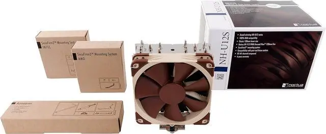 The NH-U12S is the latest 12cm model of Noctuas classic U-series single tower CPU coolers, which have received more than 400 awards and recommendations from the international press. The S-versions 45mm slim shape ensures 100% compatibility with tall RAM modules and at the same time, its fine-tuned design and the class-leading NF-F12 FocusedFlow fan with PWM support for fully automatic speed control allow it to further improve its predecessors renowned quiet cooling performance. Topped off with the trusted, pro-grade SecuFirm2 multi-socket mounting system and Noctuas proven NT-H1 thermal compound, the NH-U12S is a complete premium quality solution that combines outstanding performance, quiet operation and excellent compatibility.