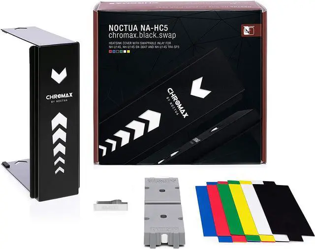 The NA-HC5 chromax.black.swap heatsink cover is an add-on accessory for Noctuas award-winning NH-U14S, NH-U14S TR4-SP3 and NH-U14S DX-3647 CPU coolers. Made from high-quality aluminium with black powder-coating finish and including swappable inlays in black, white, red, blue, green and yellow, it allows users to colour-customise the cooler in order to coordinate it with popular build colour schemes such as all black, black and white or black and red. Thanks to the easy, straightforward installation, changing the looks of your NH-U14S cooler only takes a few minutes and doesnt even require taking it off the CPU. Combined with the chromax.black.swap edition NF-A15 fan, the NA-HC5 gives you endless possibilities to design your very own, individual NH-U14S that looks just as great as it cools!