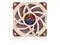 The NF-A12x25s impeller is made from Noctuas novel Sterrox liquid-crystal polymer (LCP) compound that features extreme tensile strength, an exceptionally low thermal expansion coefficient and damping characteristics that are ideal for reducing resonance and vibration phenomena in advanced fan-blade designs.