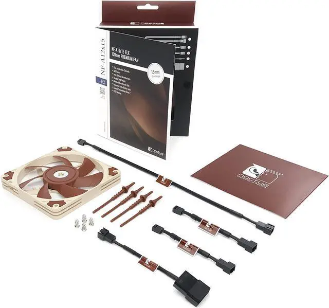 Featuring advanced aerodynamic design measures such as Flow Acceleration Channels and Noctuas AAO frame, the NF-A12x15 is a highly optimised, premium quality quiet fan in size 120x15mm. Its 15mm slim design makes the NF-A12x15 ideal for space-restricted applications such as low-profile CPU coolers or HTPC cases. The FLX version provides 1850/1400/950rpm speed settings via the supplied Low-Noise Adaptors in order to allow full flexibility in fine-tuning the fan for maximum ventilation performance or near-silent operation. Its superb running smoothness, reference-class SSO2 bearing and Noctuas trusted premium quality make it an elite choice for the highest demands
