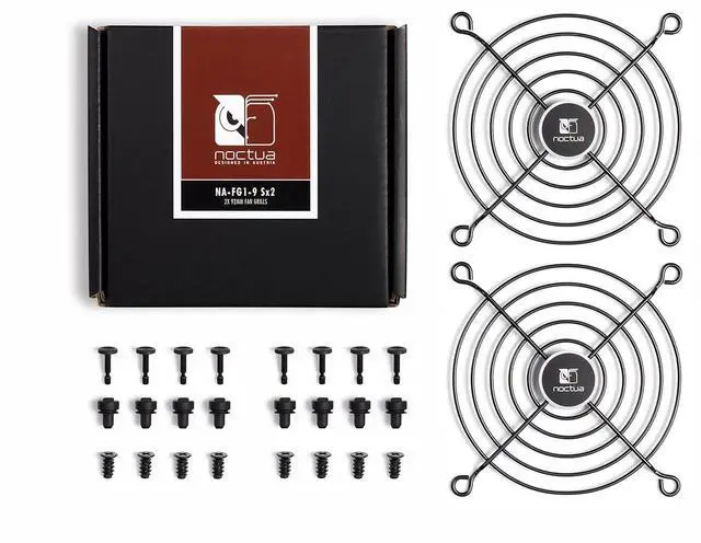 • Premium-grade matte-black fan guards for 9cm fans, including screws and tool-free push-pin mounting system; Reliable protection, excellent acoustics and high airflow thanks to round struts and offset design; Easy-to-install push-pin mounting introduces an additional 5mm offset for reduced influx turbulence, better performance and low-noise operation; Set of 2 (Sx2) includes 2 fan grills, 8 fan screws and 8 tool-free push-pin mounts; Ideal for protecting fans in PCs and various other applications such as 3D printers or home ventilation (no risk of putting fingers inside the fan, cables hanging into the fan, etc.).