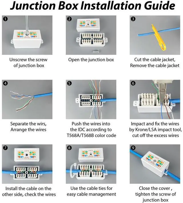 • [Compatibility]: The Junction Box is compatible with Cat 5/5e/Cat6 Ethernet cables.