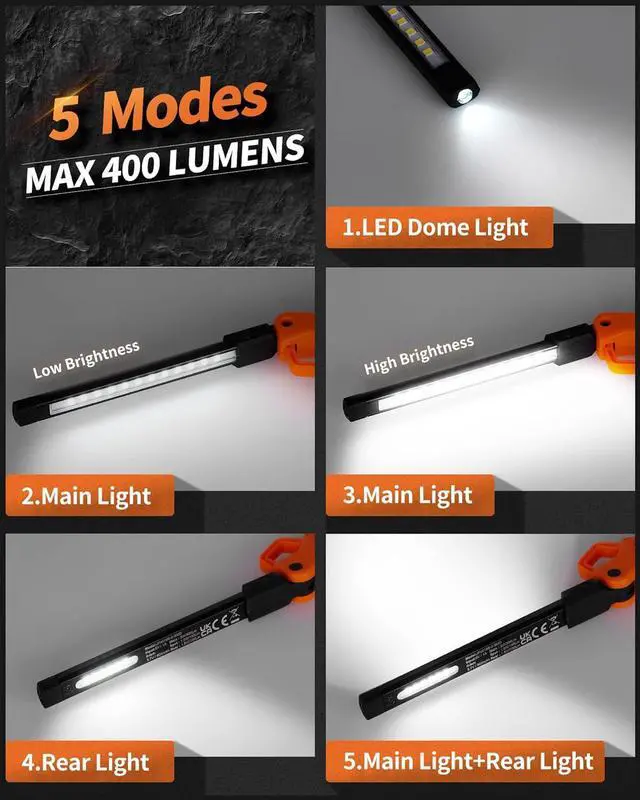 Compact & LightweightWith its small size and lightweight, this multifunctional portable light is the perfect companion for any adventure. it won't take up much space in your backpack or tool kit and won't weigh you down on long hikes.