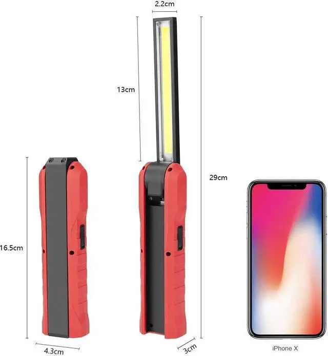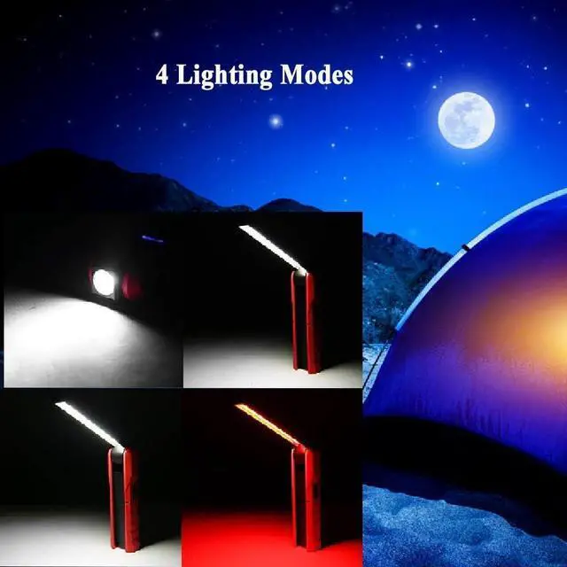 Inspection Work Light: LED light on the head offers you a normal spotlight usage, which can be used as a flashlights. Super bright COB light in the side provides lighting a large area as a floody light to light in various situations such as workshop. This work light is perfect for workshop, repair or emergency use. Best lighting tool for tight spaces.