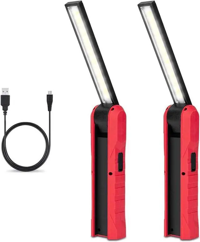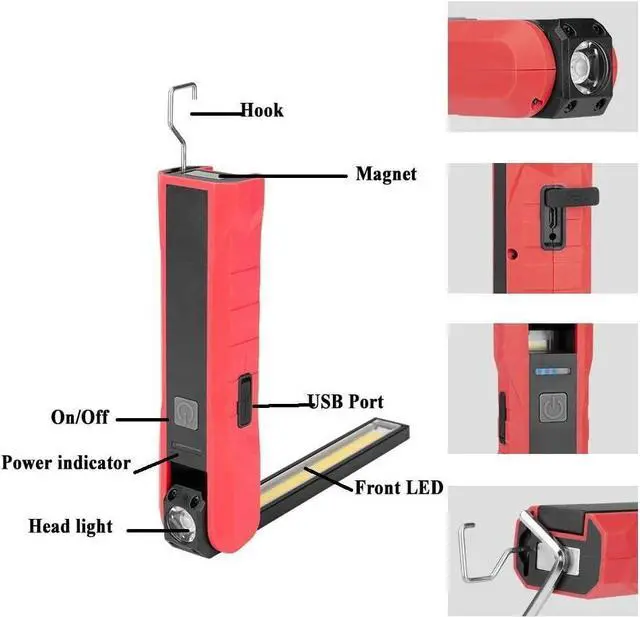 Rechargeable Work Light: This rechargeable work light Built-in rechargeable battery, charging by USB port ( included usb cable), The indicate light can show the charging or full charging. Led work light is made of hard rubber, anti-sweat, and anti-slip. The head is aluminum which dissipates the heat effectively, prolong the life of the lamp.