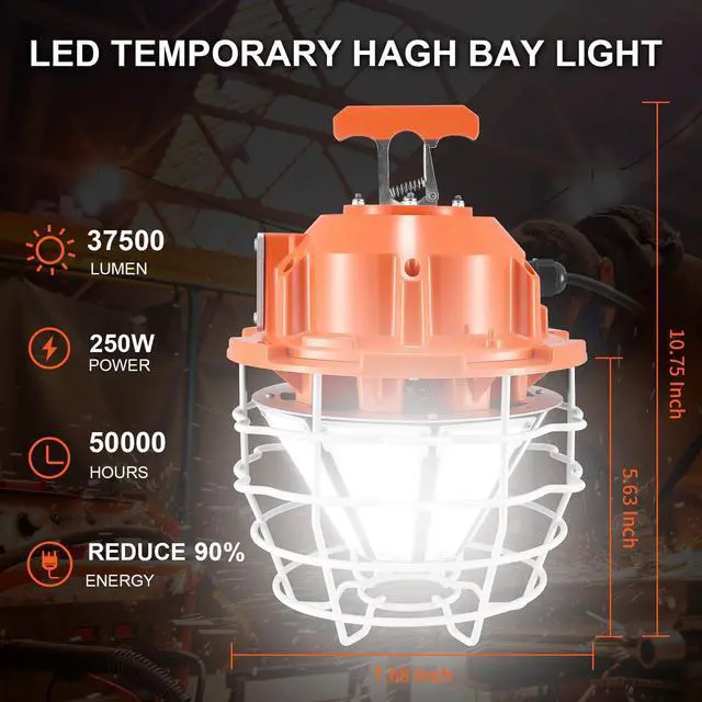 Extremely Bright: Equipped with up to 150 lumens per watt (150Lm/W) LED chips, ensuring that the 250W LED work light delivers stunning lumen output. It provides 360-degree, omni-directional lighting with no dead spots, illuminating every corner.