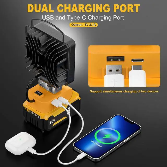 USB + TYPE C CHARGING PORTThis is our unique features of flood lights, 5V 2.1A great for charging phones, tablets, MP4 players, digital cameras, PSP game console, set top box and more.