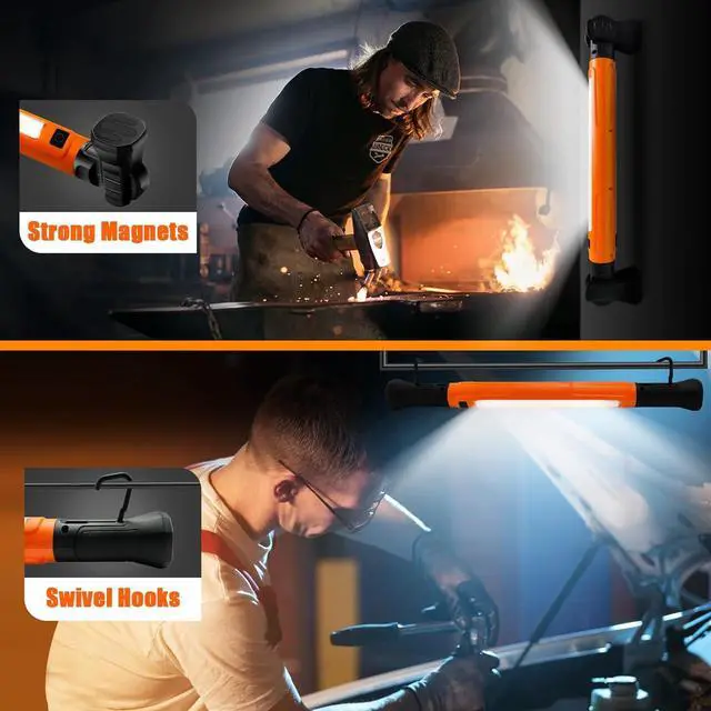 High BrightnessLED work light features COB LED light board can produce up to 3000LM high brightness and can light from 160-degree angle, which can cover your working area. Besides, the work light has 2 levels of brightness adjustment so that you can choose the appropriate brightness effect according to different needs.
