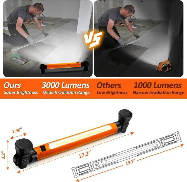 Waterproof & DurableThis bar-shaped handheld work light adopts high-quality ABS material. IP54 waterproof rating ensures its performance for outdoor use. The sturdy and durable material also has the advantage of being drop-resistant. Thus, this protable led work light is very practical.