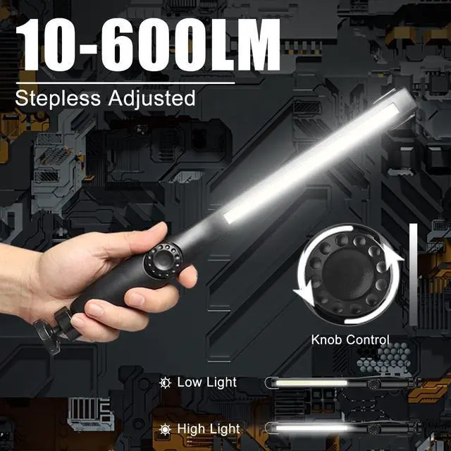 Excellent IlluminationAdopts high-quality COB chips with 600 lumen high brightness, with wide range of visibility, providing tons of light at full open, easily light up an entire room. Easy to turn on by the knob, and adjust brightness for different needs. No dark spots, no glare light, plenty bright to give you lighting for a specific task area.