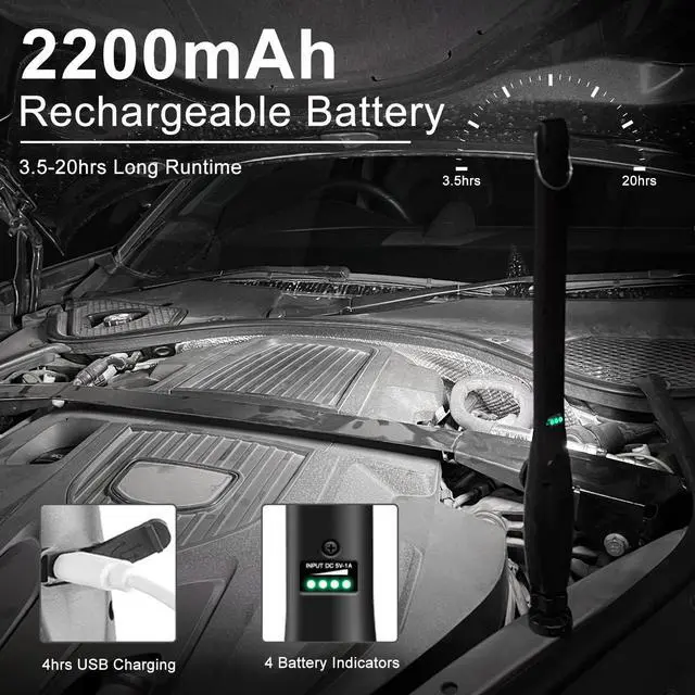 Rechargeable & Long-lastingBuilt-in 2200mAh Li-ion rechargeable battery, USB Fast Charging, 3.5 -20 hours Long Runtime when fully charged, energy efficient and Eco-friendly. 4 Power Display--Help you keep track of remaining battery reserve, charge the light in time.