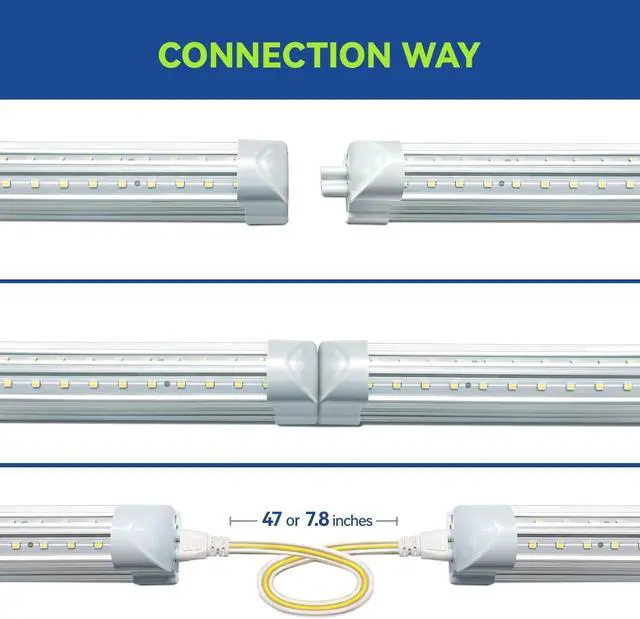 Extendable LED Light FixtureWith 48 inches connecting cords and short connectors, you could easily connect up 6 T8 2FT LED light fixtures in series to create an extendable design, perfect for vast space, such as barn, garage, workshop, workbench areas, storage areas, warehouses, basements, equipment rooms, etc.