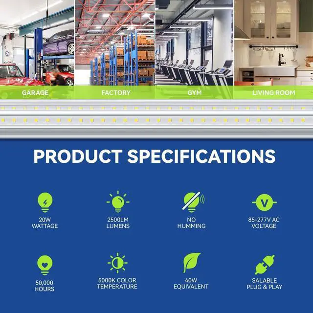 Simple InstallationEquipped with 59 inches power cords with on/off switch, these 2FT led shop lights be directly lit after being mounted to the ceiling. Whats more, the ceiling lights are able to be hardwired to other circuits easily.