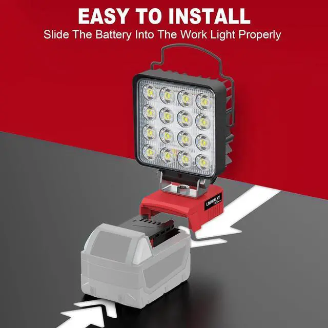 BATTERY POWEREDLed work light for milwaukee m18 batteries 48-11-1820 48-11-1822 48-11-1840 48-11-1850 48-11-1852 48-11-1860 48-11-1862 and more. Easy to use even when there is no power supply outdoors, as long as you bring batteries.