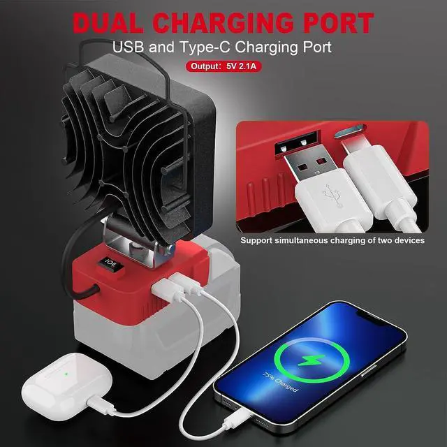 USB + TYPE C CHARGING PORTLIVOWALNY for m18 battery light has dual charging port, supporting simultaneous charging of two devices. 5V 2.1A great for charging phones, tablets, MP4 players, digital cameras, PSP game console, set top box and more.