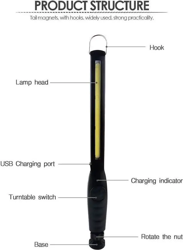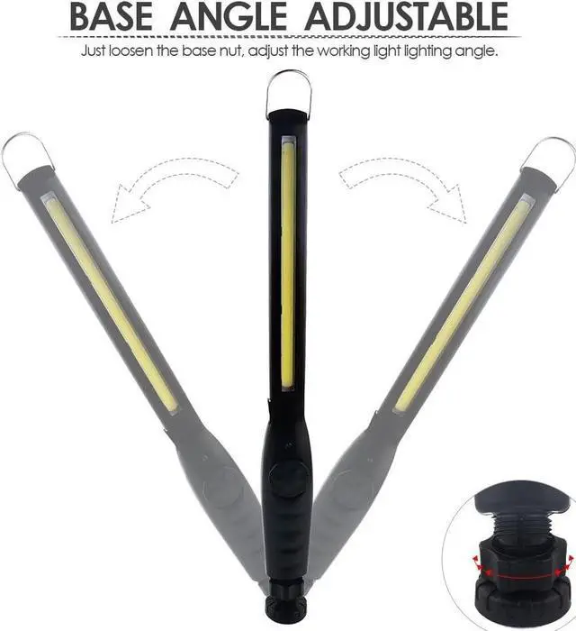 Magnetic Base and Swivel hook: Swivel hook & magnet base makes your hands free, and the body of the work light can be adjustable to provide multi-angle illumination.