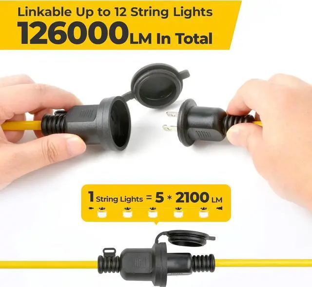 Linkable & Expandable & Protective Plug: The maximum series power is 960W, which means you can connect up to 12 light strings in series. The brightness can reach up to 126000LM. Through the upgraded waterproof plug connection, it can be expanded to the required lighting length according to actual needs to meet various demand scenarios
