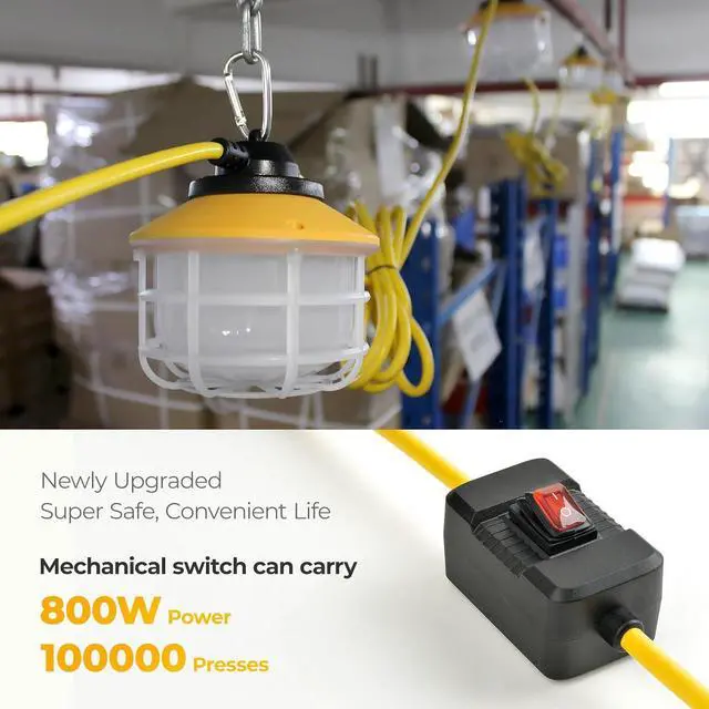 ETL Certified Heavy Duty Cable: As an industrial-grade temporary work light, the 18AWG wire will provide you with more safety due to its excellent insulation, wear resistance, and anti-aging properties. High-strength plastic lampshades can also provide IK07 super protection, are anti-fall and wear-resistant, and have high light transmittance, making them a more cost-effective choice