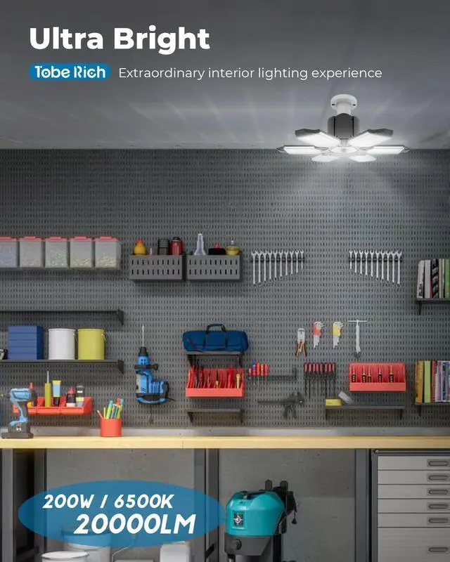 : With 312 pcs upgraded energy-saving LED chips, 6 panels + 1 central panel, total output 200W, 20000LM brightness, 6500K daylight, providing the best interior lighting experience. Our LED garage lights consume much less energy than traditional incandescent or fluorescent bulbs, saving you a lot of money on your electricity bill.