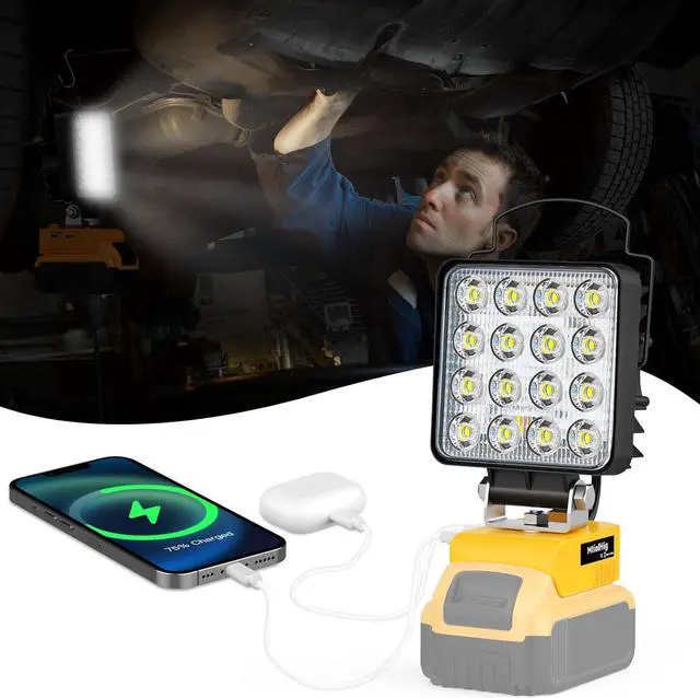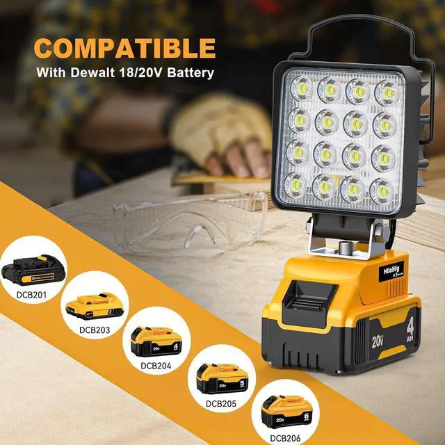 COMPATIBLE WITH DEWALT BATTERY - MtiolHig 48W 4800lumen cordless led work light is designed for dewalt 20v battery, such As for Dewalt DCB200 DCB201 DCB203 DCB204 DCB205 DCB206 Etc. You can get rid of the entanglement and bondage of the rope If you use this cordless hanging light on your workshop, garage, indoor and outdoor.