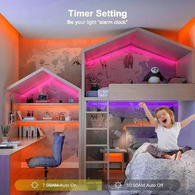 Timer function and Custom color, Leds can use the timer functions for sleep and setting a more ambient mood at bedtime, It Can stay in any of the 16 million colors. You can adjust the light brightness and saturation from 1% to 100%.