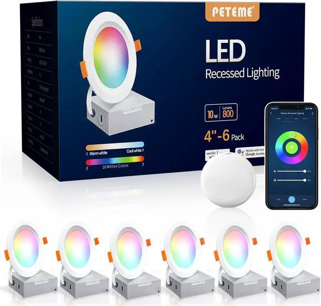 RGB and CW Parameter10W (800Lumens), 80w equivalent. Peteme smart Pot light supports Warm white & Cool white from 2700K to 6500K. You can use the APP to adjust different colors according to different scenes or different needs, nearly 16 million colors in total.
