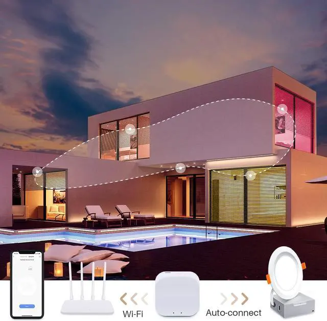 APP Intelligent Control1. Download the APP named Smart Life. 2. Select automatic search, connect to the hub. 3. The hub will automatically search for downlights and then select the connection. The led Ceiling lights can work with Alexa and be controlled remotely. (* 2.4GH z Wi-Fi only. )