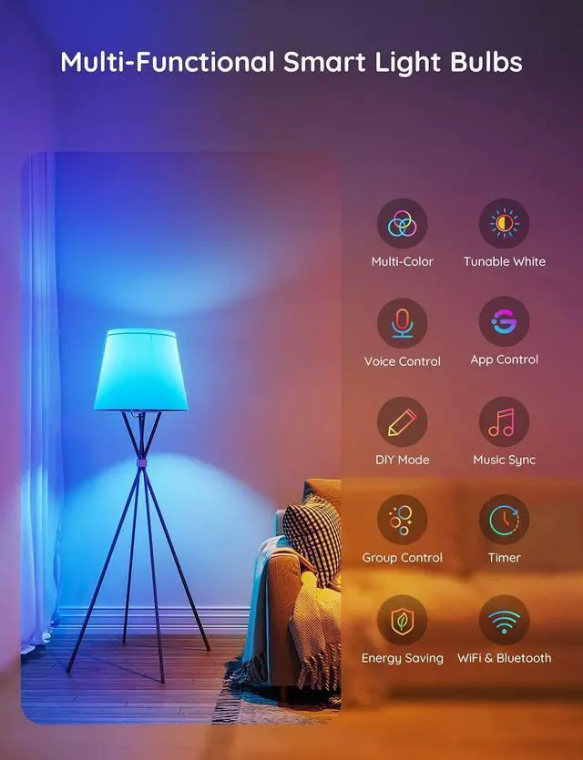 Smart Control: Govee color changing light bulbs make it possible to control your bulbs with simple voice commands. And you'd also feel free to turn your smart light bulbs on/off, adjust brightness, or change the colors, set scenes via Govee Home App.