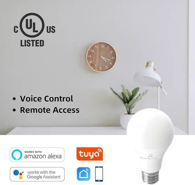 HIGH QUALIY & RELIABLE - These Wifi light bulbs with E26 base provide 800Lumens soft white brightness, 80+ high colour rendering indexes. Have long lifespan, easy to install, save energy are several important features about these dimmable LED bulbs. Require 2.4GH z Wi-Fi network connection