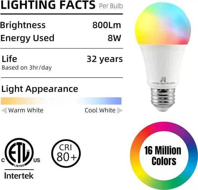 ENERGY SAVING &SCHEDULING - The 8W A19 LED BULBS, equivalent to traditional 60W incandescent lamps. To compare with the traditional halogen bulbs, these Color Changing bulbs save more energy, also can help you save more money on the electricity bills. Also, the timers or schedules system allow you to set your light to auto turn on and off no matter when you want, such as waking up with a soft warm light with the beautiful sunrise in the morning.