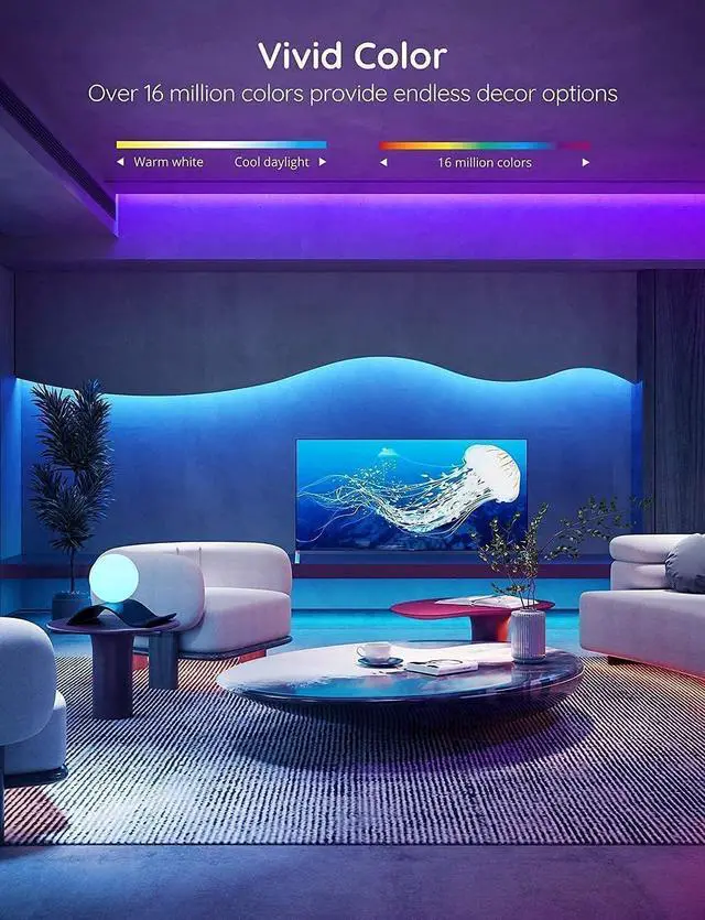 Hands-Free Voice Control: The Smart LED Light Strip work with both Alexa & Google Assistant. Free up your hands and power your lights on and off, change colors, or adjust brightness with simple voice commands.