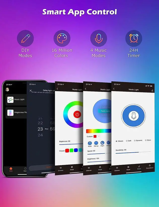 Smart Life App Control Endless PossibilitiesConnect with "Smart Life" APP and start discovering the endless possibilities, customizable DIY colors and fascinating effects, plus zestful music and scene modes. Enjoy yourself in your bedroom, shooting short films, or having a party with friends in the house, Magiacous versatile smart light bar can definitely meet your need.