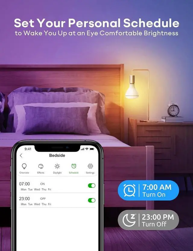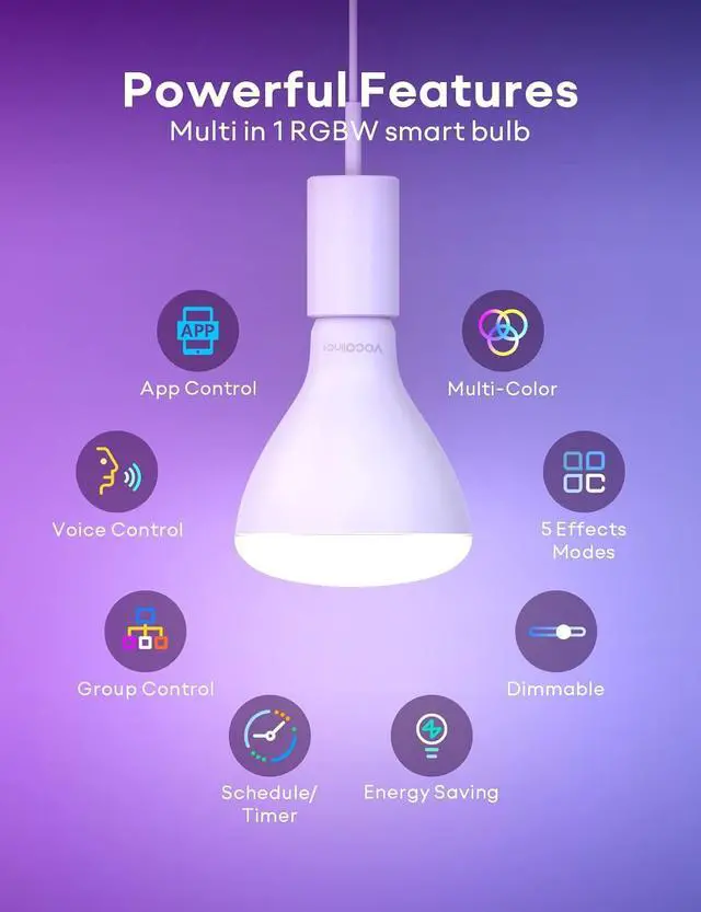 Timing and Energy Saving: Set timers and light schedules, Automating your colour changing bulbs on or off or changing the colors of your smart light bulb to make it seem like someone is at home, even when you are away. With a service life of approximately 25, 000 hours, energy savings of up to 88% equates to savings of up to $10 per year.