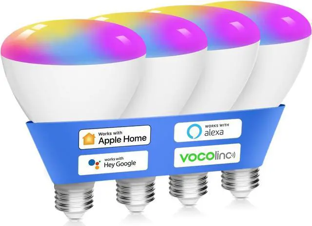 Voice Control]: VOCOlinc BR30 Smart light bulb works with Alexa Echo, Google Home Assistant and Apple HomeKit, Control the smart bulb via your smartphone & voice (e. g. "Alexa, set the bedroom to blue", "Hey Siri, dim the kitchen lights to 50%") VOCOlinc smart LED bulbs make your life easier and smarter. ( 2.4GH z Wifi is required for first connection)