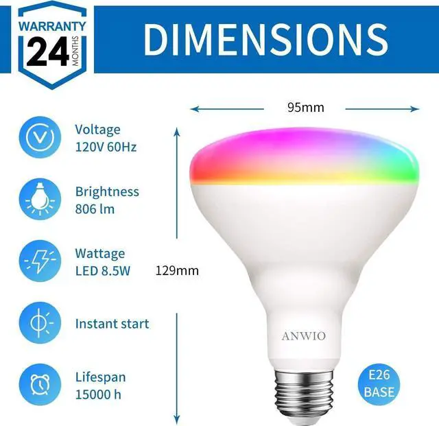 Voice & App Control: smart light bulbs are compatible with Alexa & Google Assistant, you can control them with simple voice commands. And you'd feel free to turn your smart bulbs on/off, adjust brightness, or change the colors via App.